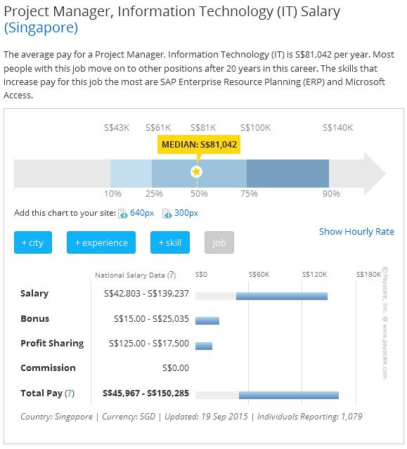 Theo thống kê, mức lương nhân viên Công nghệ thông tin (CNTT) dao động từ S$ 45,909 – 152,000; mức lương trung bình của S$80,999 mỗi năm. Và công nghệ thông tin là một trong 5 ngành có mức lương cao nhất tại Singapore cùng với tài chính ngân hàng, dầu khí, dược phẩm và công nghiệp chất bán dẫn.