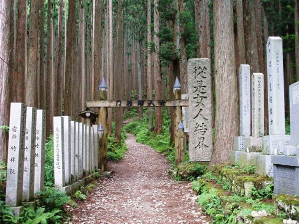 Tấm bia đá với dòng chữ “nyonin kekkai”, có nghĩa là cấm phụ nữ.